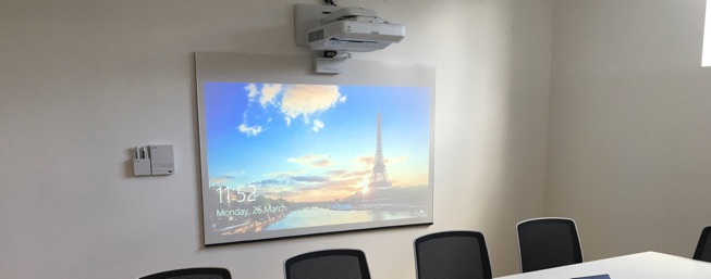 Both Crestron and Epson controls hang in central locations in the facility, providing end-users with immediate and convenient access. The new Boardroom room was also fitted out with Crestron Mercury Controls and a Kramer Retractable Table Box, making it easy for Audio Visual infrastructure such as data, cable, video and power connections to be mounted through under table mounting surfaces.